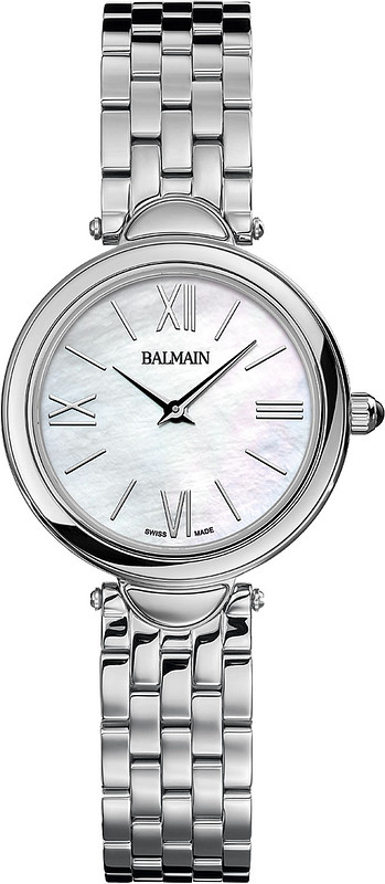 De ronde behuizing van de BALMAIN HAUTE ELEGANCE B81513382 is zilverkleurig en gemaakt van hoogwaardig roestvrij staal. De wijzerplaat is uitgevoerd in een elegante parelmoerkleur en het glas is gemaakt van krasbestendig saffier. De zilverkleurige band van het horloge is ook gemaakt van roestvrij staal en sluit met een vlinder- of vouwsluiting voor een comfortabele pasvorm.