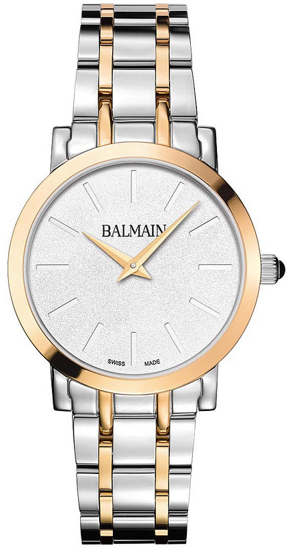 De ronde behuizing van de BALMAIN LAELIA LADY II B44323926 is goudkleurig en gemaakt van roestvrij staal, waardoor het horloge duurzaam en van hoge kwaliteit is. De zilveren wijzerplaat en het saffierglas zorgen voor een luxe uitstraling, terwijl de bicolor roestvrij stalen band het geheel compleet maakt.